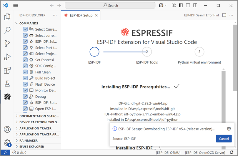 Espressif의 ESP32는 Visual Studio Code(이하, VSC)를 이용하여 개발환경을 구축할 수 있으며, ESP-IDF 개발환경 구축 자체로는 가장 단순하다.
