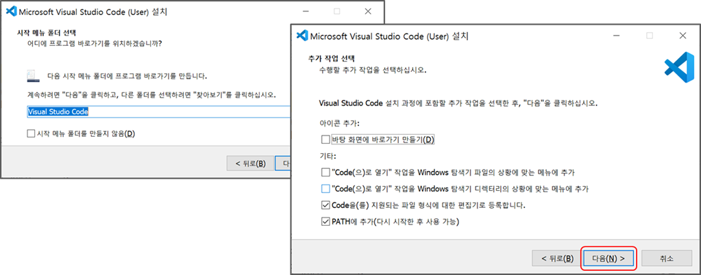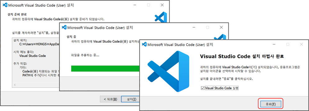 VSC가 다운로드가 완료되면, 더블클릭 후 설치를 진행한다.