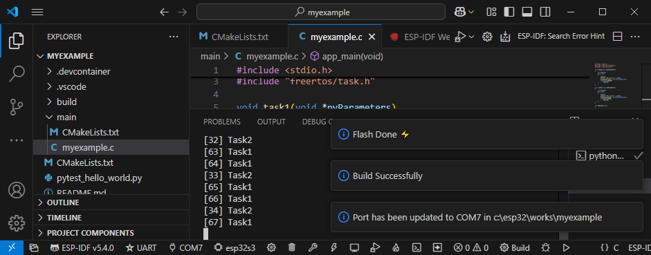 ESP32가 사용하는 FreeRTOS는 멀티태스크를 지원하는 운영체제이다. 따라서 둘 이상의 태스크를 실행할 수 있다.