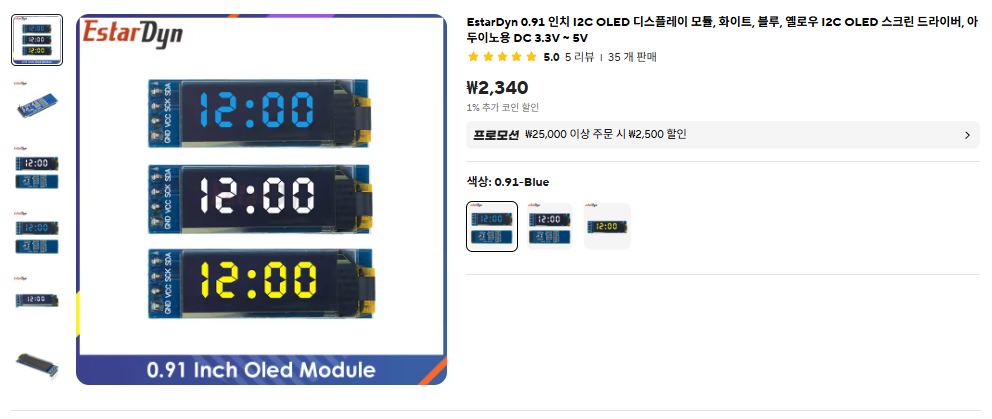 알리를 돌아보다가 초소형 OLED가 눈에 띄어서 0.9인치와 0.5인치 모듈을 샀습니다.