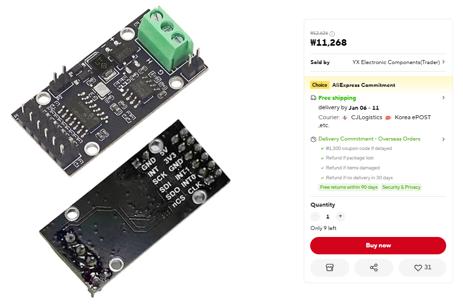 다음은 구매한 모듈의 정보이다. MCP2518FD로 검색하면 저가형은 대부분 이 제품이 나오는 것같다. 가격은.. 흉폭스럽게 11000원이 넘는다. 큼.. 테스트 하려면 2개는 사야되니까...