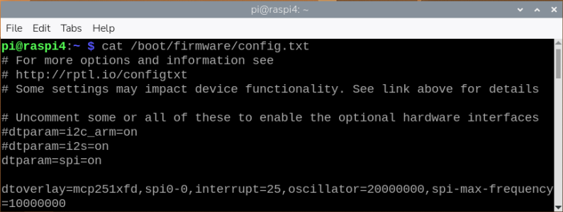 dtoverlay=mcp251xfd,spi0-0,interrupt=25,oscillator=20000000,spi-max-frequency=10000000