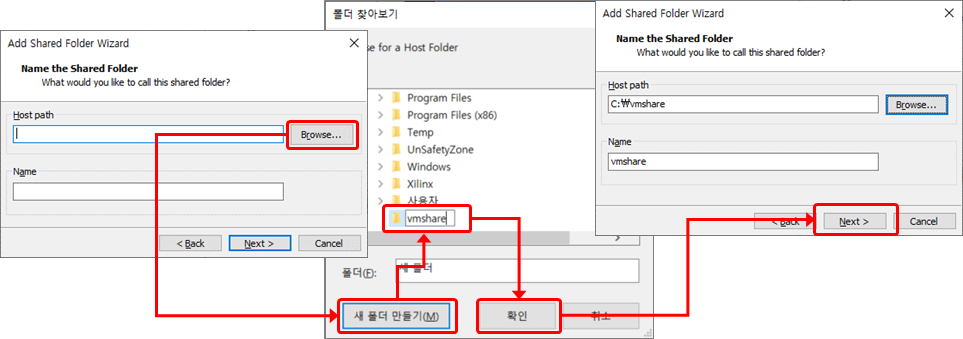 - windows에서 리눅스와 공유할 폴더를 지정한다. 기존에 없다면 아래와 같이 하나 생성한다.