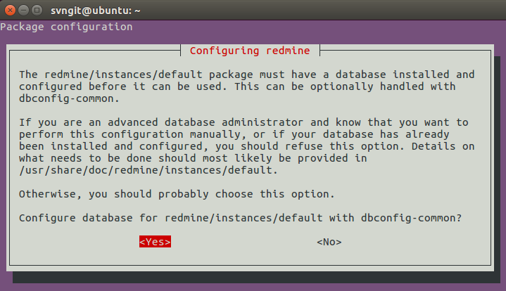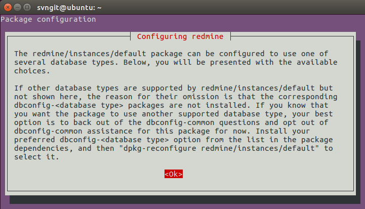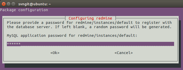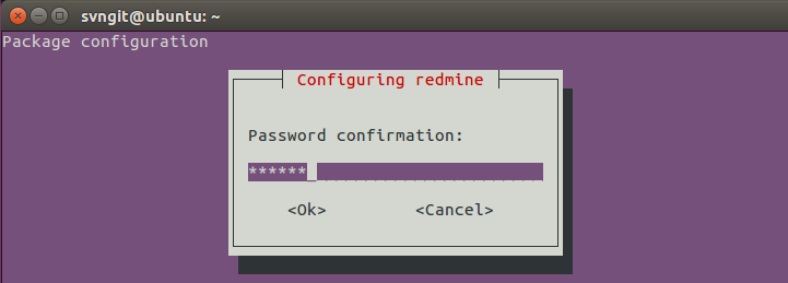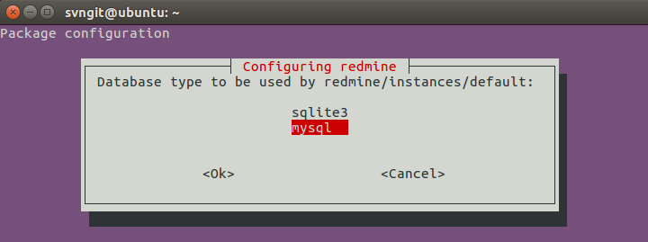| $ sudo apt-get install redmine redmine-mysql |