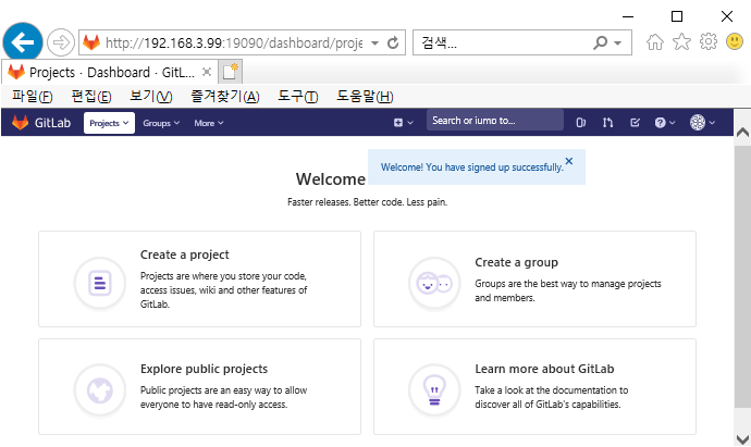 - 이전 게시물에서 등록한 관리자 계정으로 GITLAB에 로그인을 한다.