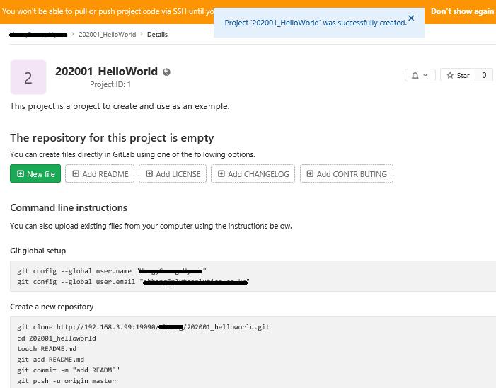 ~/gitlab/202001_helloworld$ git commit -m "add README.md" nothing to commit, working tree clean