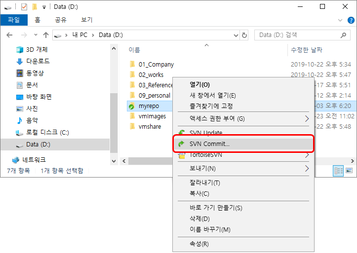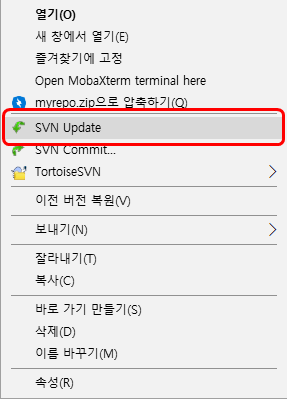 - SVN과 연동된 폴더에서 마우스 우측 클릭후 SVN 업데이트를 해주고 변경 사항을 확인한 다음 진행 한다.