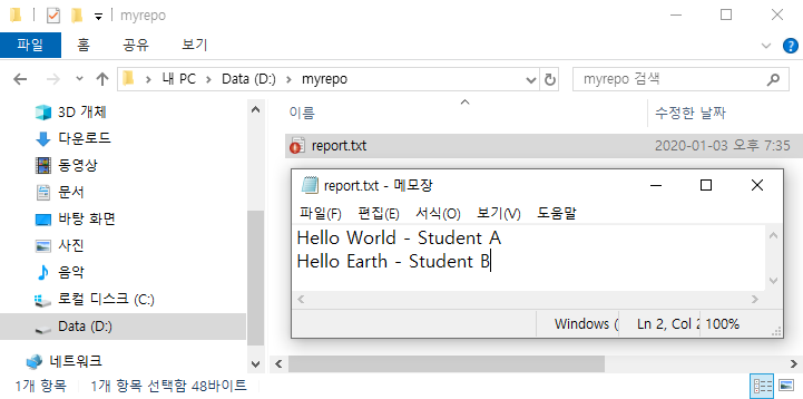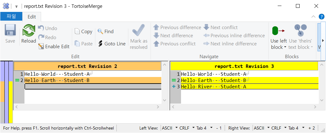 - 아래와 같이 파일의 변경사항을 확인할 수 있다.