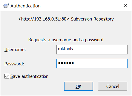레포트 항목을 체크하고 OK를 누르면 인증화면이 표시된다. SVN 계정과 암호를 입력하여 계속 진행한다.