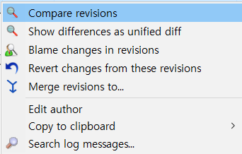 - 마우스 우측클릭후 메뉴에서 compare를 선택한다.