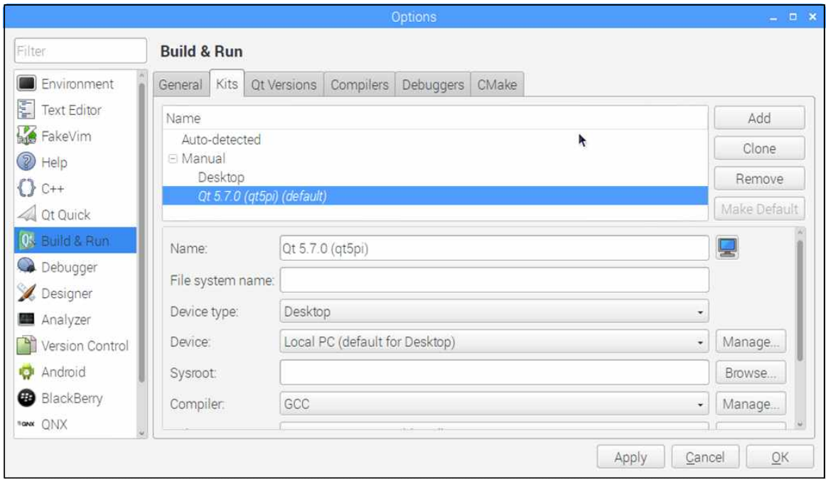 Kits 탭에서 Auto-detected 디지 않으면 Add 버튼을 눌러 직접 설정하여야 한다. 아래의 그림은 필자가 직접 설정한 내용이다.