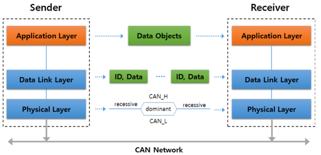 CAN의 경우 OSI 레이어중 다음과 같은 레이어를 기반으로 사용된다.