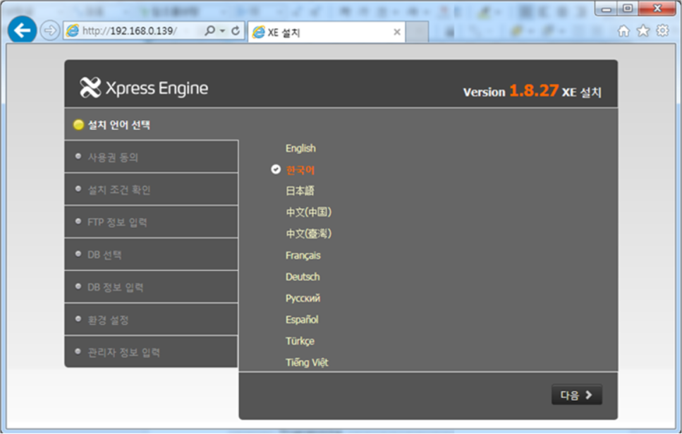 XE설정은 굳이 라즈베리파이에서 할 필요가 없다. 라즈베리파이와 연결되어있는 PC의 웹브라우저에서 ip를 입력하여 설정할 수 있다.